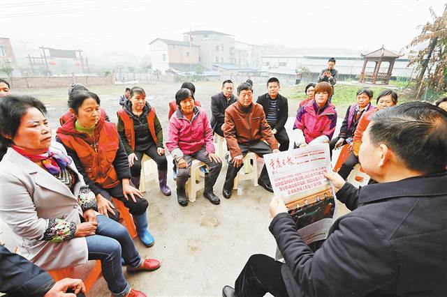三月十三日,沙坪壩區西永街道勞動村舉行院壩會,村干部、黨員和村民代表一起學習習近平總書記參加重慶代表團審議時的重要講話精神。通訊員 孫凱芳 攝