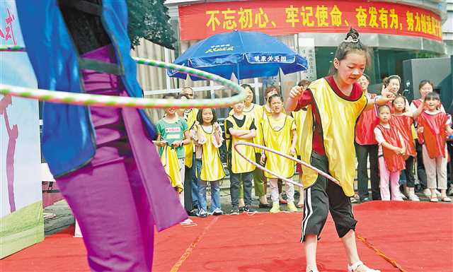 5月12日,江北區寸灘街道蘭溪社區,參加母親節活動的孩子和母親一起參加趣味運動會。首席記者 崔力 攝