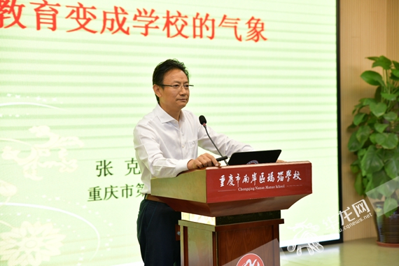 南岸區(qū)瑪瑙學(xué)校校長廖慶做主題報(bào)告 周濤 攝
