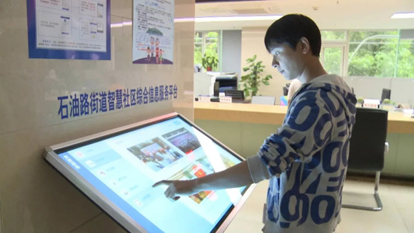 在渝中區(qū)石油路街道辦事處,一進(jìn)門,你就能看到一臺(tái)配有觸摸屏的“石油路街道智慧社區(qū)綜合信息服務(wù)平臺(tái)”。