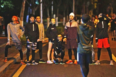 ????說起參加“夜跑族”的初衷,48歲的趙晨龍回憶道,“剛從部隊復員時我有208斤,后來做過一陣健身教練,慢慢喜歡上了跑步,3個月里減掉50多斤。”辭掉工作后,趙晨龍并沒有放棄運動,“后來一直堅持跑,還通過朋友圈子把大家都召集起來,把健身理念傳遞出去,后來規模越來越大。”