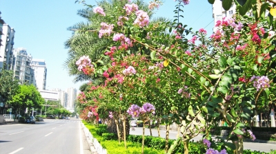????點上做精、線上出彩、面上成景,我區通過栽植大量的開花、色葉、季相變化植物,加裝輕軌柱立體綠化,在市區各個路段營造出極具層次感、色彩感的綠化帶。
