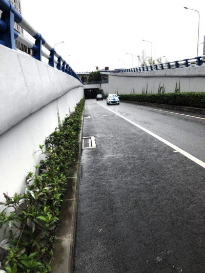 ????下穿道低于正常馬路,上下車輛在行駛時,駕駛員總有些擔憂。為了確保安全,區市政工程處為此加固了橋梁上的防撞護欄。