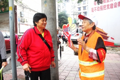 ????在文明勸導員中,一位拄著拐杖的阿姨顯得格外引人注目。她就是來自光冶社區的羅昌碧。