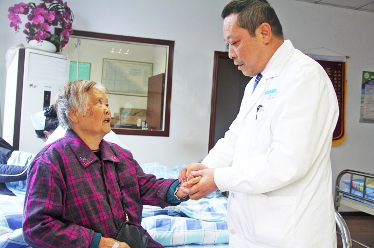 ????“我們的8位醫護人員實行輪流值班,衛生室24小時不關門。”甯雪峰告訴記者。在鄉村,這樣的24小時值班制,為村民帶來了極大的便利。前天夜里,民勝村一位癱瘓八年的村民厲文炬(化名)打通了衛生室的電話,“甯醫生,你快來看看我,我頭痛的厲害,老頭子也不在家里……”聽到這里,甯雪峰立刻前往老人家中,山路崎嶇,老人輪椅行動不便,他主動將七十多公斤的老人從家門口背到了車上,幸得及時救助,老人化險為夷,但近60歲的甯雪峰卻因此腰部舊傷復發。“醫術高、服務態度又好,有了這樣的好醫生在身邊,我們都愿意在家門口治病了。”村民張鮮榮說。