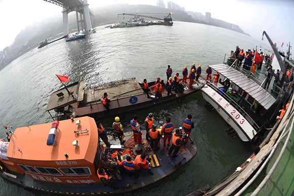 重慶長航等單位的專業打撈船采用多波束聲吶,發現一長約11米、寬約3米的物體,基本確定為墜江公交車。打撈面臨的主要難點是水域復雜、江水較深,定位、探測工作正進一步開展。待準確定位后,完善方案,迅速開展打撈工作。