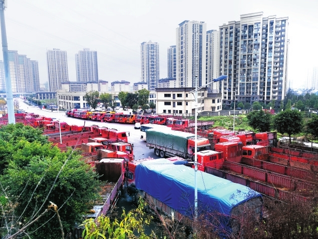 ????原來,金科星辰小區一期與二期之間,有一斷頭路的空置平壩區域,外連九龍坡區華福路交界處,而居民張元智口中的大貨車,常年停在這一塊約600平方米的平壩里。幾年來,斷頭路平壩亂停放大貨車的現象日漸突出,車輛深夜進出噪音擾民、洗車修車給公交車輛(490路公交起點站)造成交通堵塞等生活問題,讓住在附近的居民苦不堪言。而隨著金科星辰二期完工交付,入住的居民越來越多,居民的抱怨也與日俱增。