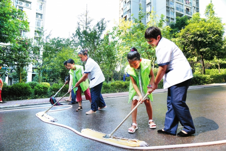 ????(記者:高祎恩 文/圖)“保潔的活兒看起來簡單,無非就是擦擦玻璃掃掃地,沒想到干起來還有這么多門道,實在不容易!”9歲男孩陳博林跟保潔員清洗完小區(qū)地面后,感慨地說。