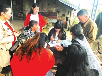 ????院壩會上,工作人員現場幫助村民繳納醫保,共有300多位村民參保。
