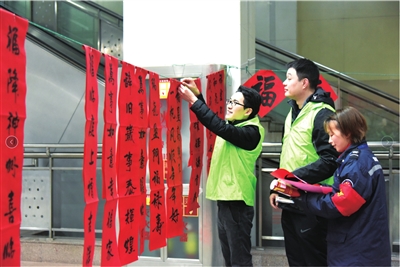 ????活動現(xiàn)場,區(qū)楹聯(lián)協(xié)會的書法家們揮毫潑墨,一幅幅精美的春聯(lián)和“福”字引得眾多旅客和市民爭相領(lǐng)取。“一帆風(fēng)順年年好,萬事如意步步高。”市民劉賢君接過春聯(lián),高興地念了起來。他說,帶上春聯(lián)回家過年,新的一年一定會順順利利、心想事成。