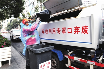 ????整個消毒搬運過程中,廢棄口罩沒有“露臉”機會,也沒有掉落地面造成二次污染。裝車后,兩人又對著自己的雙手進行消毒,才重新進入駕駛艙,開車趕往下一個廢棄口罩收納點。從區府廣場到圖書館公廁、沃爾瑪,再到湖榕路、春暉路、翠柏路的各居民小區,最后到區人民醫院,每到一處,這樣的動作就重復一次,下午6點左右,兩人才結束這一天的收運工作。