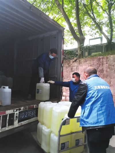 ????“來,搭把手,慢點,一箱一箱地搬,千萬小心。”2月5日上午,一輛運著100桶10升裝酒精、50桶25升裝84消毒液的貨車穩(wěn)穩(wěn)地停到區(qū)政府大樓。這是萬家燕健康產(chǎn)業(yè)集團捐贈給我區(qū)一線抗疫人員的物資。