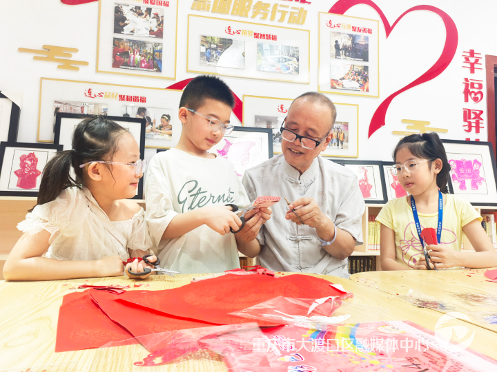 8月的重慶,驕陽似火、暑氣蒸騰,躍進村街道大堰社區活動室里全是孩子們的歡聲笑語,宛如一陣清涼的風,驅散了夏日的燥熱。“周爺爺,您今天教我們剪漂亮的蝴蝶嘛!”“我要剪朵超大的紅花送給媽媽!”長條桌旁,十幾個孩子圍著79歲的周定洲,你一言我一語地撒著嬌。