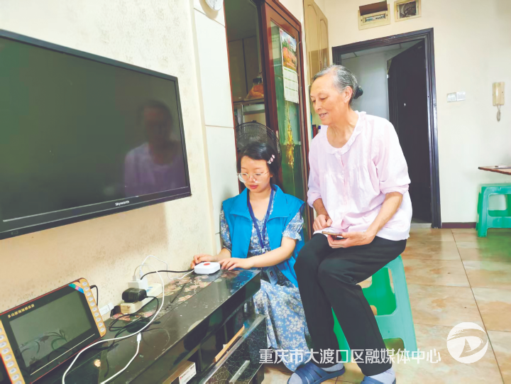77歲的周明淑子女常年在外工作,是小區內典型的獨居老人。龍都社區免費為周明淑家中安裝了煙感報警器、緊急呼叫拉繩以及紅外線AI監管智能設備,并與八橋鎮“安置房數智家”應用相連。