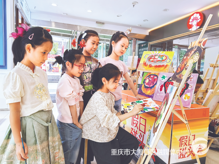 九宮廟商圈步行街上,川劇演員以靈動指尖勾勒千年風華,百態臉譜在光影交錯間瞬息萬變,引得觀眾掌聲雷動;新天澤國際廣場內,孩子們執筆點墨,將巴渝非遺的紋樣與故事凝于畫紙,讓文化傳承在童心中生根發芽;各大商場則以現代消費活力點燃假日激情,滿減優惠、國潮快閃輪番登場,人流如織間升騰起經濟的暖意;大濱路的火鍋文化節,更以“一鍋煮盡巴渝味”的豪邁,在麻辣鮮香中品味重慶獨有的煙火溫情……