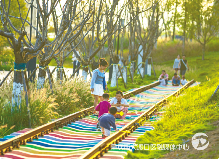 彩色軌道如被打翻的調色盤,走在上面,腳步仿佛都沾了幾分童趣,隨手定格都是江景與彩軌相映的清新畫面。