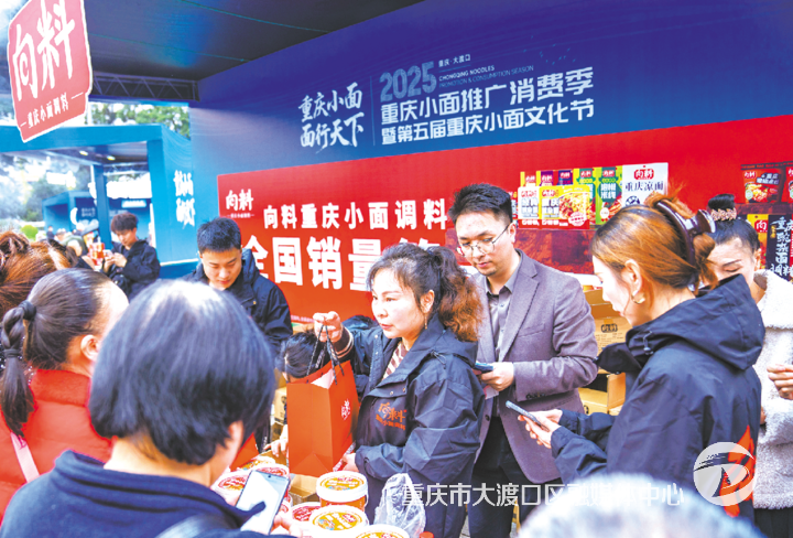 本次小面文化節(jié),注冊于大渡口區(qū)的重慶向料食品有限公司備受矚目。公司不僅帶來了爆款小面調(diào)料,火爆的試吃場景更讓其成為現(xiàn)場焦點(diǎn)——展位前始終排著長隊(duì),氤氳香氣不斷吸引市民駐足。“60斤試吃面從早到晚供應(yīng)不停,首日便售出92件小面調(diào)料。”公司品牌部工作人員劉可介紹,“不少市民試吃后連連贊嘆:‘麻辣鮮香,這才是重慶小面的正宗味道!’”