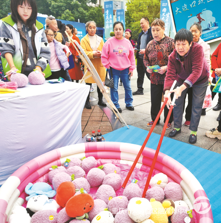 互動體驗(yàn)區(qū)同樣充滿歡聲笑語,眼疾手快、黃金筷子手、嗦面爭霸賽等趣味活動,吸引了不同年齡段的市民參與。在“黃金筷子手”游戲區(qū),市民張明理正專注地握著巨型筷子,在充氣池內(nèi)嘗試夾取玩偶。“太有意思了!”張明理興奮地說,“我是第一次來參加小面文化節(jié),沒想到氛圍這么熱烈,不僅能吃到各種好吃的小面,還能玩游戲贏獎品,感覺特別棒。這里的每一個區(qū)域都很有特色,讓我對重慶小面的產(chǎn)業(yè)、文化有了更深的了解。”
