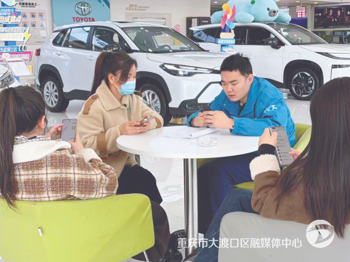 走進位于西城大道的重慶中升廣汽豐田大渡口店,寬敞明亮的展廳內,整齊停放的各款車型在燈光下熠熠生輝,其中新能源汽車被擺放在最顯眼的位置。三三兩兩的顧客或圍著展車仔細查看,或坐進駕駛室體驗感受。銷售顧問們則穿梭其間,耐心解答著各種問題。