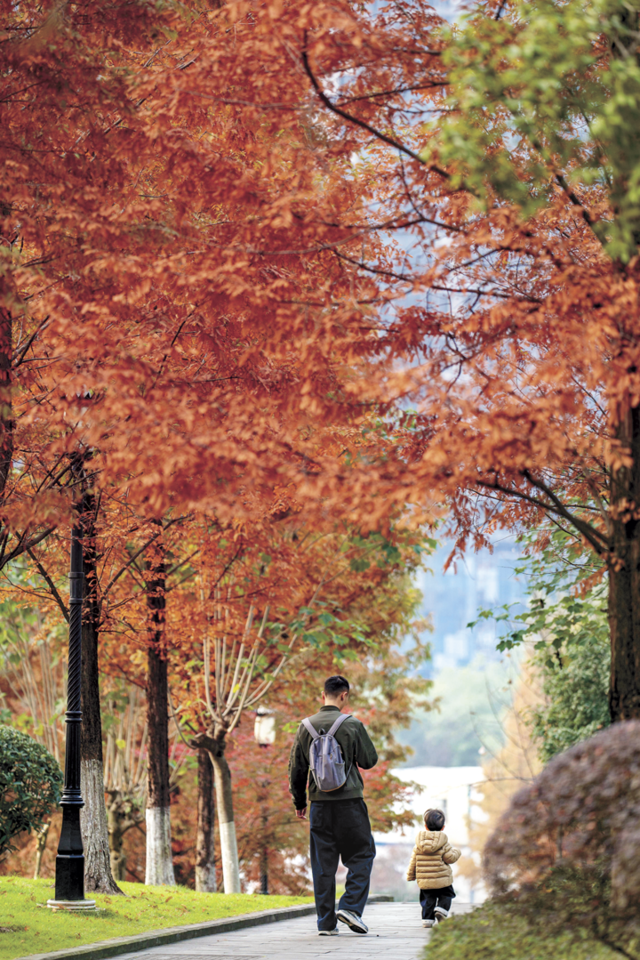 入冬以來,大渡口悄然換上了五彩斑斕的盛裝,黃、紅、綠等色彩交織,層次分明,猶如大自然打翻的調(diào)色板,美不勝收。