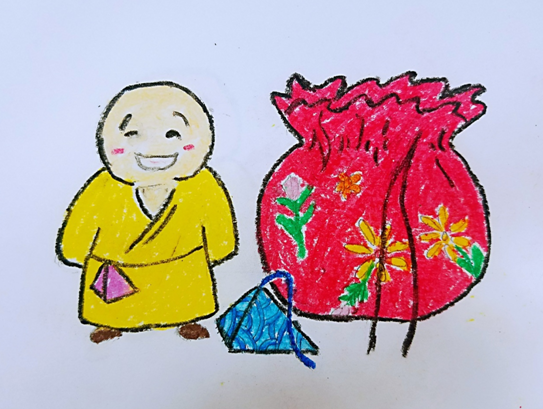 ????傳說古時候每年的四、五月間各種蟲害、瘟疫嚴重地威脅著人們,玉皇大帝便派了一位神仙下凡。神仙發現天下人有善有惡,便懲惡護善,掏出五色香袋對善良的人說:每年五月初五,你們同家里的小孩戴上它,“身上戴香包,門上插艾蒿,瘟病全除掉,吉祥光高照。流傳至今每年端午大人們都會為小孩佩香囊以避邪驅瘟。